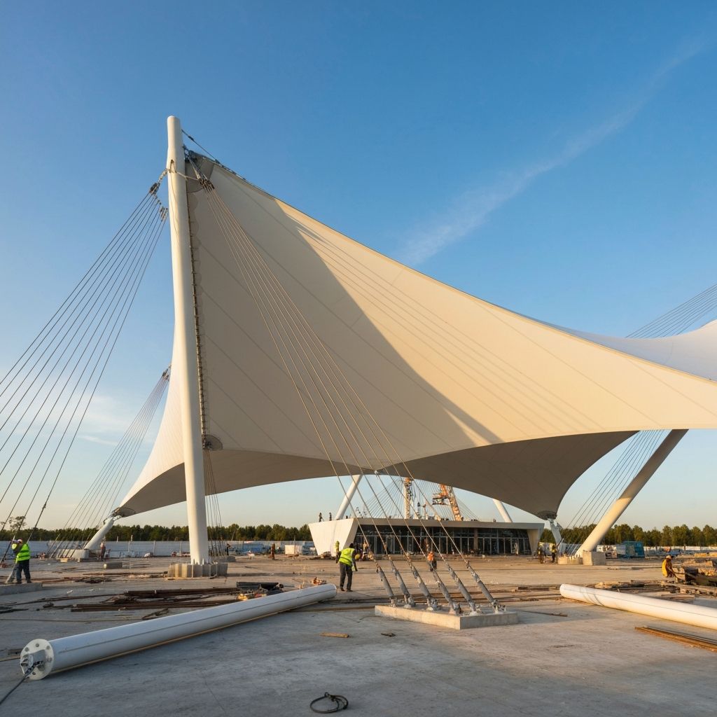 Innovative engineering solutions for tensile fabric structures including stadiums, warehouses, and architectural features requiring specialized design and materials expertise.