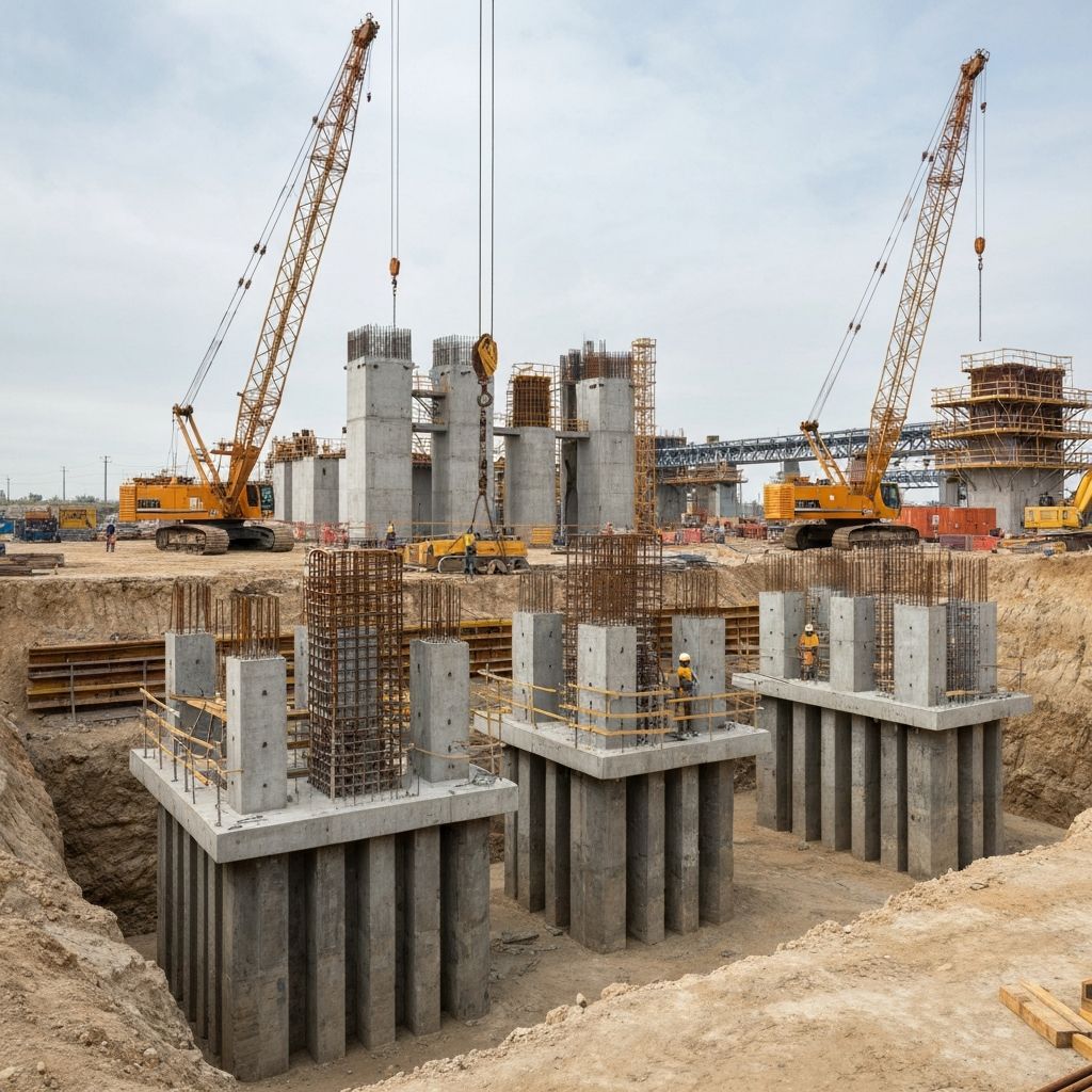 Complex civil engineering projects including foundations, earthworks, and heavy-duty structures for industrial and infrastructure applications.